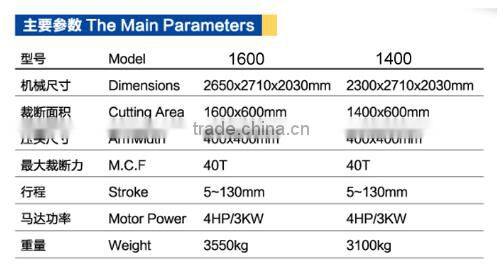 6. The machine adopt four column-oriented system, double crank balanced, hydraulic drive, ensuring speed and precision of cutting die machine.