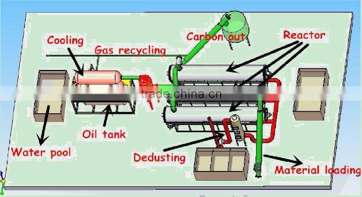 1.This continous tyre pyrolysis machine is fully automatic. Using PLC system control, it can fulfill feeding while oil coming out and discharging. It can continous work 24hours*6months.