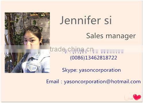 Our business depends on your business and our purpose is "supporting you". We mainly provide popular products with high quality at home and abroad and create competitive advantages for our customers over their own competition. In addition, you could suggest any design or set any special requirement for our products and we shall do our best to settle them for you. We believe our honesty and sincerity shall make any cooperation agreeable.