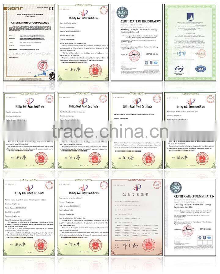 We have lots of certifications to make us have the rights to export our old tire to crude oil plant overseas.
