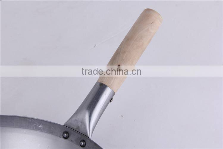 - 6.The handle will be in wooden or bakelite which avoid the injure while cooking.