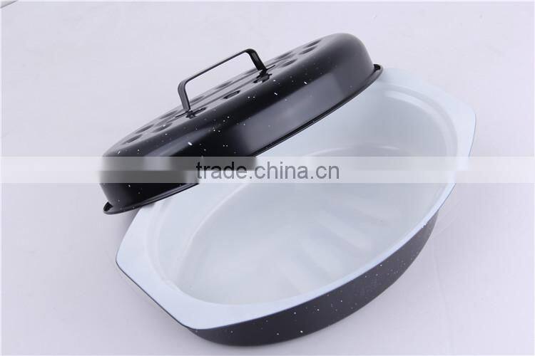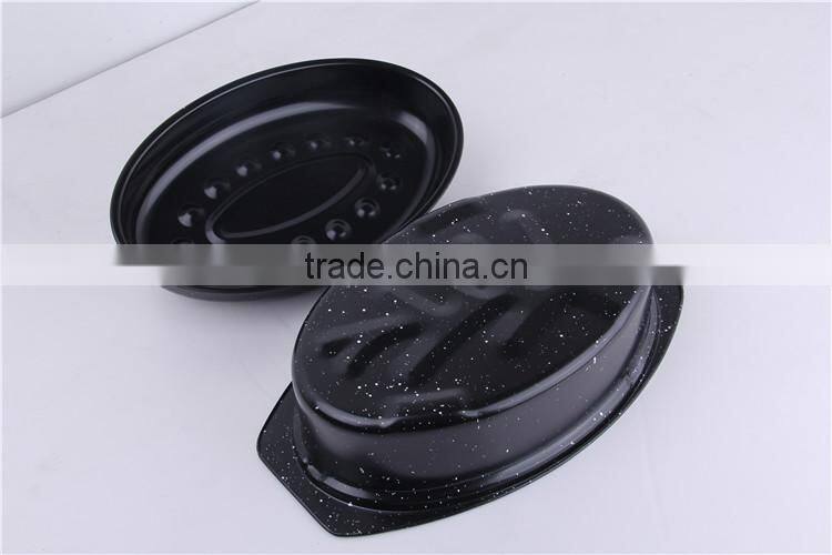 Chinese Black Enamel Oval Shallow Oven Baking Pan With Rack