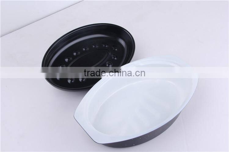 Best Kitchen Tool Oval Enamel Microwave Baking Pan With Lid