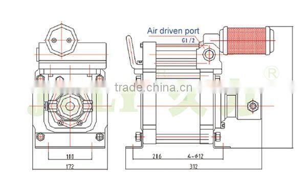 * The outlet pressure based on air driven pressure is 8Bar (116psi). (It is estimation of maximum allowable pressure.)