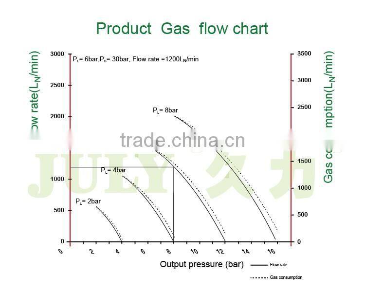 2. High Flow rates at High pressure: When High flow rates at high pressure are needed ,the Air Liquid pump can charge a receiver to an even higher pressure level ,thus storing a volume of air aviable for rapid release at a constant pressure through a pressure reducing valve