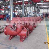 2) The pump installation has two ways: one is single foundation, i.e the pump and the motor are connected directly and mounted on one concrete foundation. the other is double foundation, i,e the pump and the motor are mounted on the seperate concrete foundation. The seal usually uses packing seal. The intake sump of the pump can be wet pit or dry pit. The axial thrust of the pump usually carried by the motor, that of small pump is carried by pump itself. The impeller of the pump is usually one stage and it can be designed as multistage as requirements. The bearings of the pump is rubber bearings or thordon bearings. when the rubber bearings are used, the shaft has shaft sleeves with pressure clear water in for lubrication.