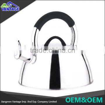 1.Suitable for all heater, induction cooker available; 2.High temperature lacquer stainless steel is durable and complements kitchen decor; 3.The teakettle interior is nonreactive so water will not absorb unwanted tastes or odors; 4.A convenient whistle sounds when water comes to a boil; 5.The teakettle features a tight-fitting lid for heat retention and a comfortable arched handle with a convenient flip-up spout for easy pouring |