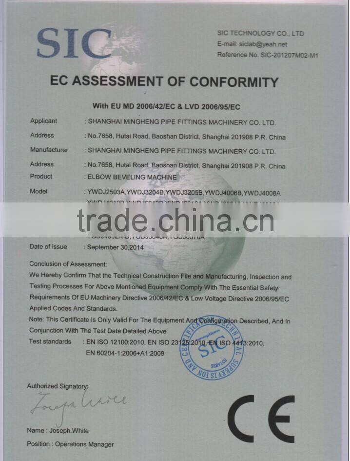 The products processed by the machine are comply with relevant elbow beveling standard.