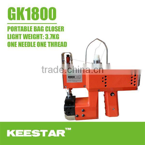 Keestar GK1800 single needle sing thread chain stitch portable bag closer sewing machine suitable for closing of all sorts of fill bags, e.g. burlap, jute, woven poly, cotton, plastic bags.