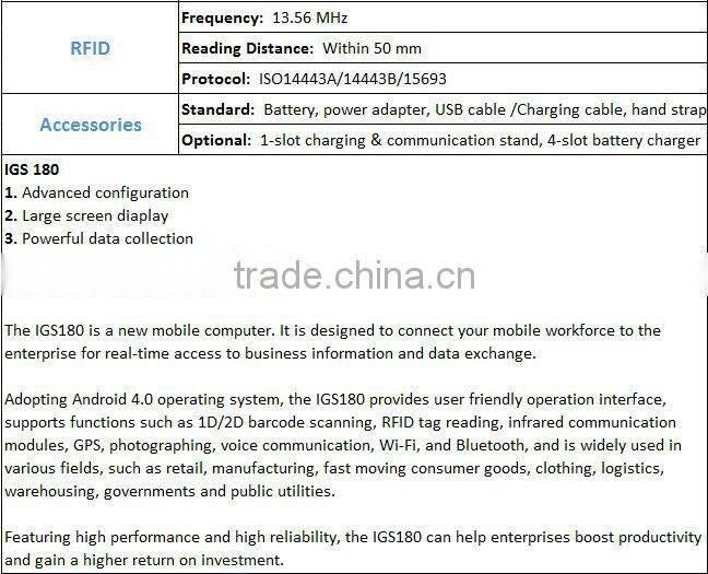 1.Supporting Android 4.0 operating system2.Support RFID