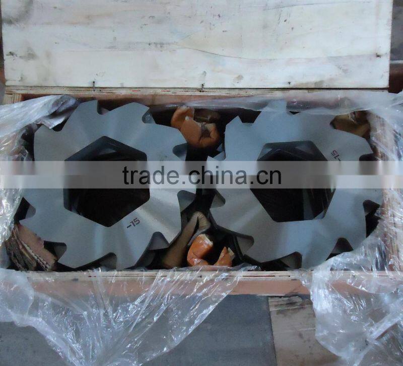 The baldes cost the most in the whole machine, best quality alloy, usually are material 6CrW2Si, Cr12MoV, etc.The thickness of balde are different: 15mm; 20mm; 30mm; 40mm; 50mm; 85mm; 100mm;
