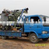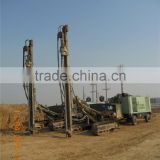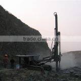 system to achieve, and only washed the source of the wind machine consumption, resulting in Air Machine Matching saves in a complete set of equipment procurement costs . Rotary organizations to adopt a new dual-motor turret to make it to the open-air blast drilling operations when drilling large holes to maintain a strong rotary torque output.In chassis system , there are a pair of floating cylinders floating in the range of 15 degree to adjust the balance of drilling rig when it works in rugged mountain road,it is very helpful for diesel engine and vertical positioning of drilling rod.This type of the machine is optimism choice in opening are mining hydro-power plant, electric power stations , and road building for exploration the stone.