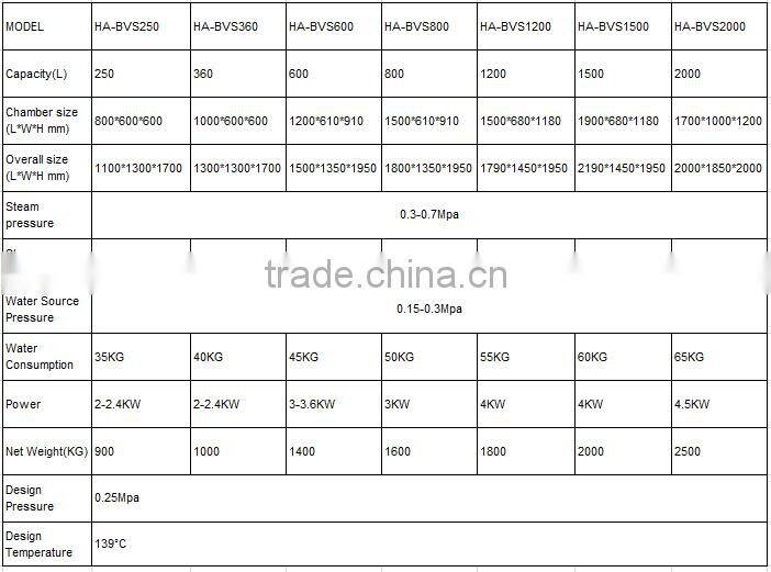 HA-BVS Hospital Vacuum Steam Sterilizer Specificaiton: