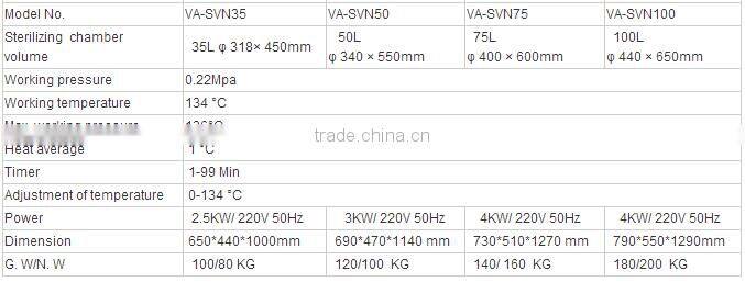 VA-SVN Prevacuum Autoclave Specificaiton: