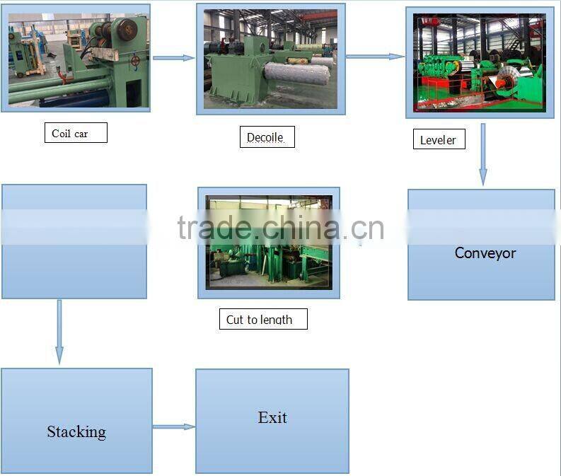 The cut to length line is used to shear the metal plate,after uncoiling, leveling, scaling, into flat sheet and stack. It is suitable to process cold rolled and hot rolled carbon steel, silicon steel, tinplate, stainless steel and surface plating after all kinds of metal material with the surface plated by film.The cut to length line is mainly composed of coil car, uncoiler, leveling machine, conveying machine, cutting plate machine, storage processing, and other groups.The line can be used with the slitting machine, which can cut sheet metal into shape with the right width and right length and stack the productions.