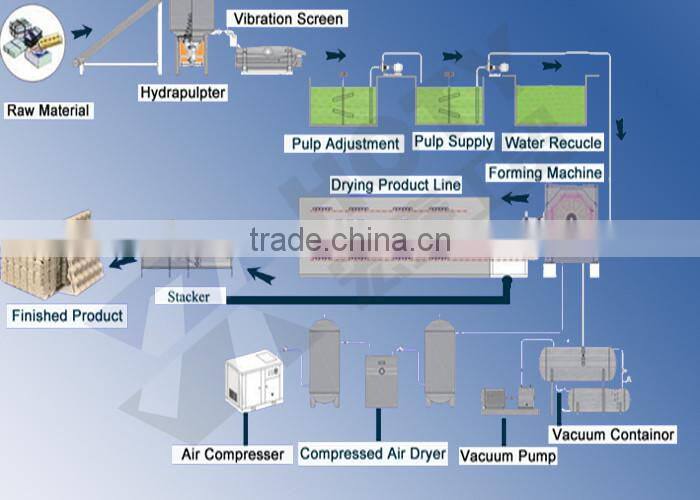 Drum-type pulp moulding machine primary comes from Europe,our company fetch in advantage technic boldly in the middle of nineties,it gets good commentary from profession's internal as a result of its excellent performance characteristic.On the basis of it ,our company develop and exploit products which apply to developing country.It has got good comments from customer and confirm of society since we launches into market.It has higher output and better dehydraulic than reciprocating forming machine which made in china.(produce cycle is 6-7 times longer than reciprocating,containing water less 20%-30%.)