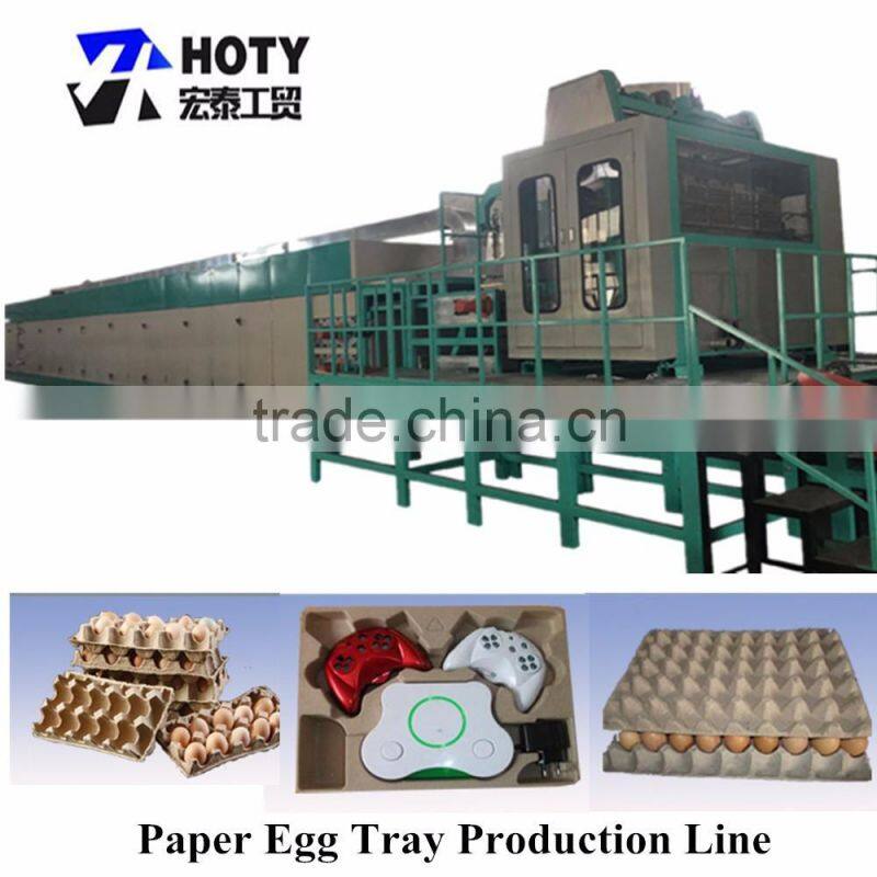 Mainly used for the products with simple structure but in big quantity, such as paper egg trays, fruit trays, cup trays and other special paper pulp molding products. This type of production line is comprised of pulp making system, forming system, drying system, and collection system. The raw material is waste paper. It’s high-efficiency, energy-saving, durable, wieldy and safe.
