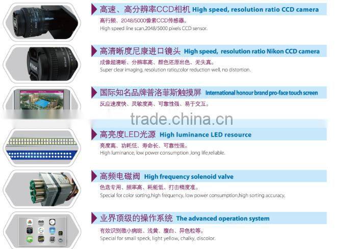 1,2048 linear CCD with high precision allows high definition identification and high speed sorting, identifying more fine.
