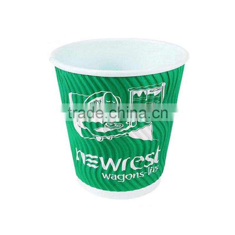 OEM Logo Eco-friendly Printed Ripple Wall Disposable Coffee Cups