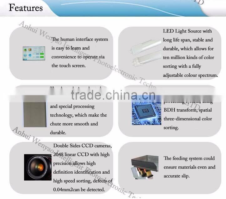 Through countless years of cooperation and OEM experience with international partners, ANHUI WENYAO has streamlined the proper procedures and processes, open up the professional techniques that are ahead of the color sorting field and deliver the highest-quality products to every corner of the world.