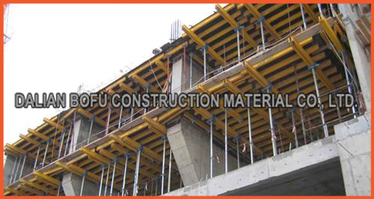 Steel prop supporting system is used to support formwork system. The system composed by steel prop, tripod, fork and H20 beam, and then put the formwork panels on the H20 beam to make slab. The maxium loading on one single steel prop (2-4m) is 1.1 ton, the high capacity of loading gurantee the safety of the whole formwork system.