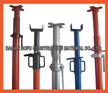 The material of steel prop is Q235, the maximum load of single prop is 1.1 ton, which can satisfy most of using. If request heavy weight supporting, just add the number of steel props to incease the density of supporting.
