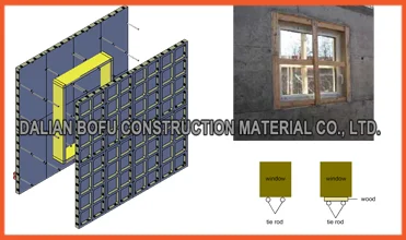 To make doors and windows by BOFU reusable plastic concrete formwork is simple, by inserting inside the formwork a wooden frame corresponding to the size of the opening needed, and then pour the walls with doors and windows.