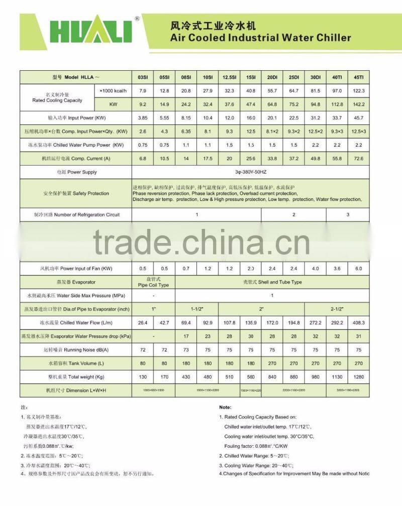 | Parameter of Air cooled industrial water chiller |