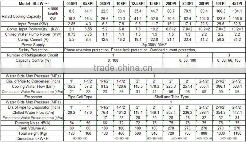 1. The Chiller cooling capacity ranged from 10.2Kw to 156 Kw.