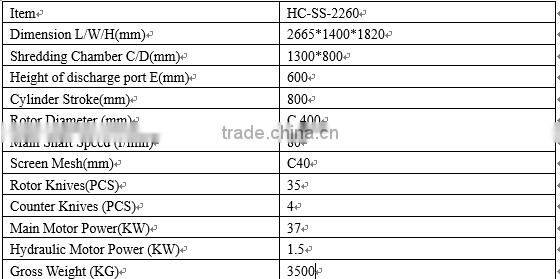 The HC-SS-4080 series of single shaft shredder are our ordinary range from small to medium size. Customers can choose suitable model in according to different rotor and balde for different special requirement.