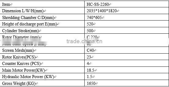 The HC-SS-60 series of single shaft shredder are suitable for shredding heavy materials including: shell of WEEE,thick walled plastic pipe, forklift pallets, packing barrels and etc. Customers can choose suitable model in according to different rotor and balde for different special requirement.