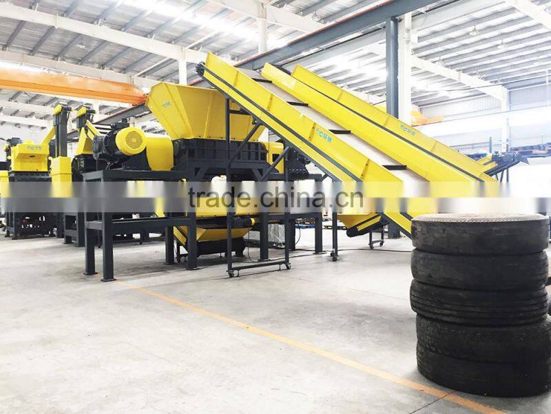 The pre-shredder is double shaft shredder which can shred the tires to be 50mm tire particles.HC double shaft shredder have the advantages of high torque,low noise etc.,and it is no need to remove the tire bead steel before shredding.