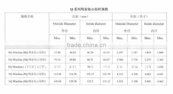 geological core drill pipe/NQ PQ NQ rock drill rod :