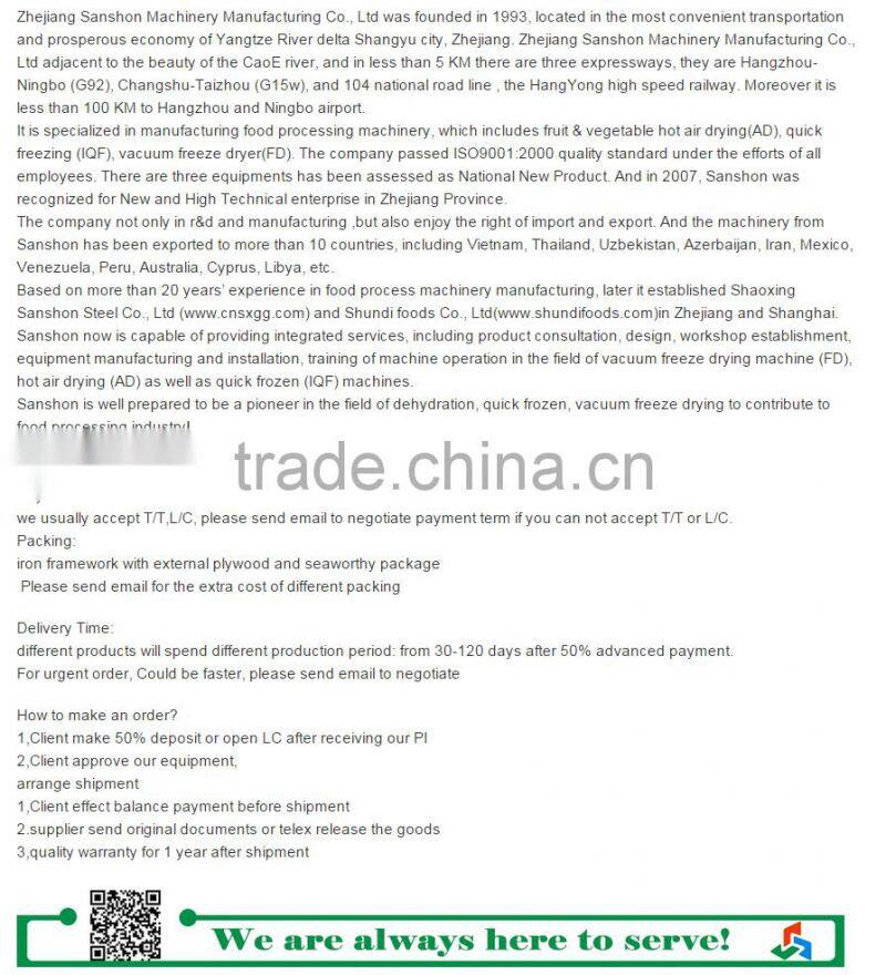 This machine is always used in quick-freezing line(cleaning--cutting--blanching--room temperature cooling--ice water cooling--draining--freezing).