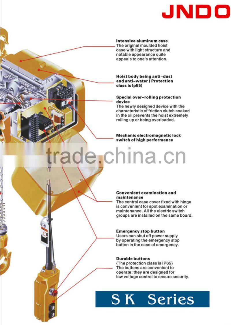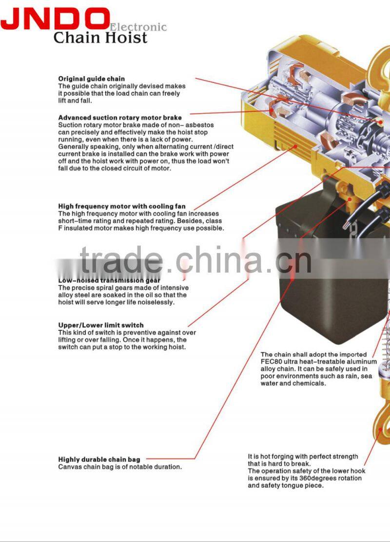JNDO electric chain hoist capacity: 0.5T,1T,2T,3T,5T,10T,25T,30T,20T,50T,60T.