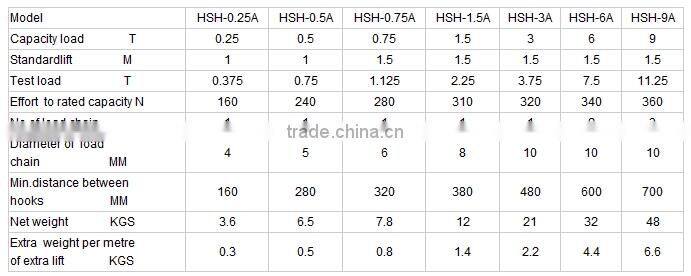 *Parameters of manual lever hoist :