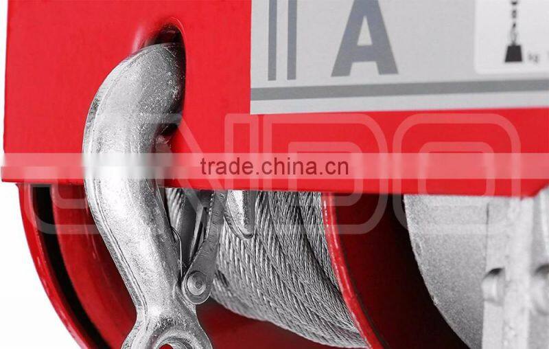The PA series mini electric hoist works under a voltage of 220V. It is mainly used to lift heavy goods under household power supply. A limiting device is provided to ensure the electricity is cut automatically when the hook has met its limit in height. It ensures a high level of safety. This product has been CE certified.