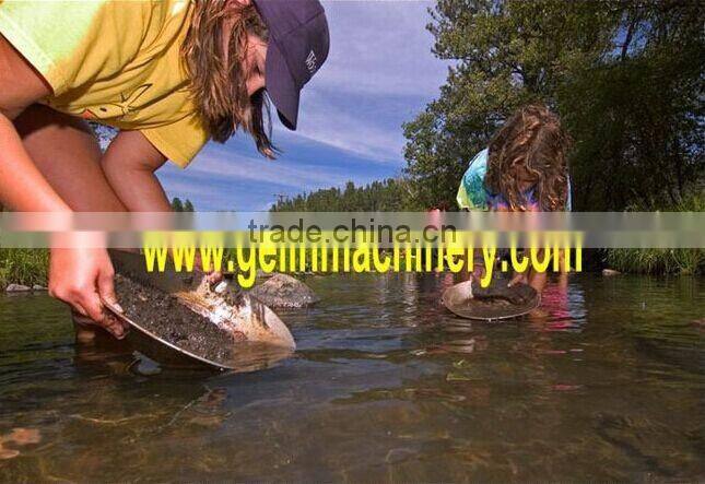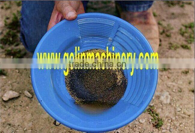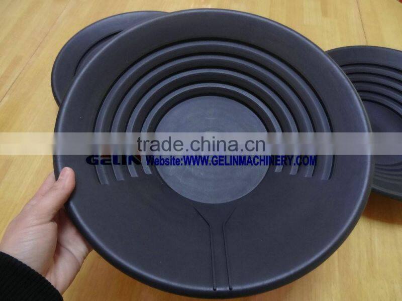 Gold wash pan is used for washing and separating the gold from the sand, alluvial, placer gold mine, river sand gold mine. It is portable and small, it is suitable for person and small miner go to the river and field to find the gold ore. It also can be used after gold washing trommel and sluice box. It is really a valuve tool for washing gold ore!