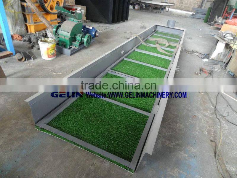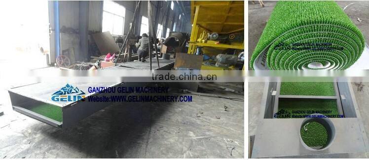 The sluice mat/gold carpet for gold is one of the necessary equipment in the processing of gold mining plant for alluvial gold, placer gold, gold sand, etc.It is also called felt, cohesive gold blanket, gold grass mat, gold rush etc. Just as its name implies, it is used for recovering gold. It usually work with the small sluice box or small shaking table for gold recovering.This equipment has the washing and sieving function. The length of washing part and sievinig part can be custom-made.
