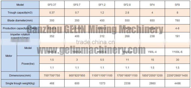 The Floatation Machine has the advantages of large air-absorption capacity and low energy consumption. Every cell owns three functions: air absorption, slurry absorption, and floatation separation, and the cells form a floatation separation loop by itself without any auxiliary equipment, and is allocated horizontally, which favors the change of flow. The circulation of mineral slurry is reasonable, and can avoid the disposition of coarse sand to the largest extent. There is self-control device on the surface of mineral slurry, so it is easy to adjust it. The impeller has backward-inclined upper and lower vanes, which produce upper and lower circulation of mineral slurrry respectively.
