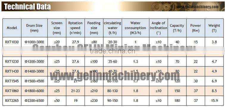 RXT Drum Washing Machine, which is also named Drum Washing Machine, is the most advanced ore washing equipment at present in China. It is able to de-slime of the sand and stone, the drum inside is equipped with single or double layer round screen which can get 2 to 3 different size of sand stone products.