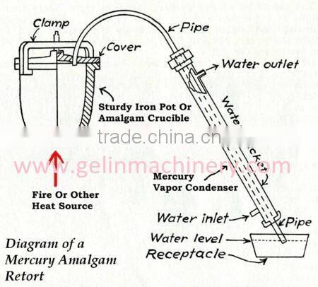 The next process after the amalgamator is to distill the gold amalgam in the amalgam retort so as to separate the gold from mercury, during which we could get the pure gold and recover the mercury for re-using.