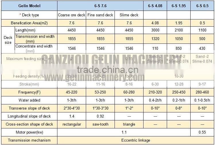 GELIN Shaker Table is one of the main equipments of gravity concentration. It is not only widely applied on separating tungsten, the tin, the tantalum niobium and other rare metals and the noble metal ore.