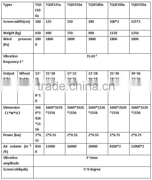 TQLZ-series vibratory cleaning screen is mainly used for screening, separating large, medium, small and light impurities mixed in the grains, which can be widely used in milling, feed, rice milling, winery, chemical factory, food, oil extracting, corn processing and other industries to clean and grade raw material. This equipment has the advantages of low noise, stable operation, high processing capacity, less energy consumption, good cleaning effect, excellent sealing effect without dust outside. Use it together with winnowing machine for better efficacy.