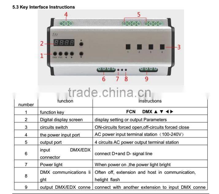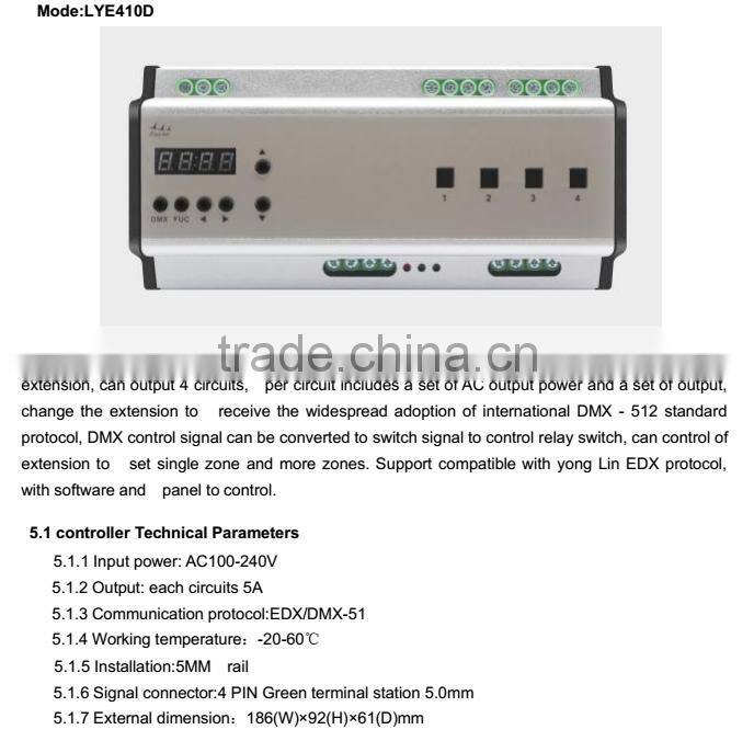 Product name: 4 CH 20A EXP Rail led Switch Controller DMX 512 Control System Model No.: LYE410D
