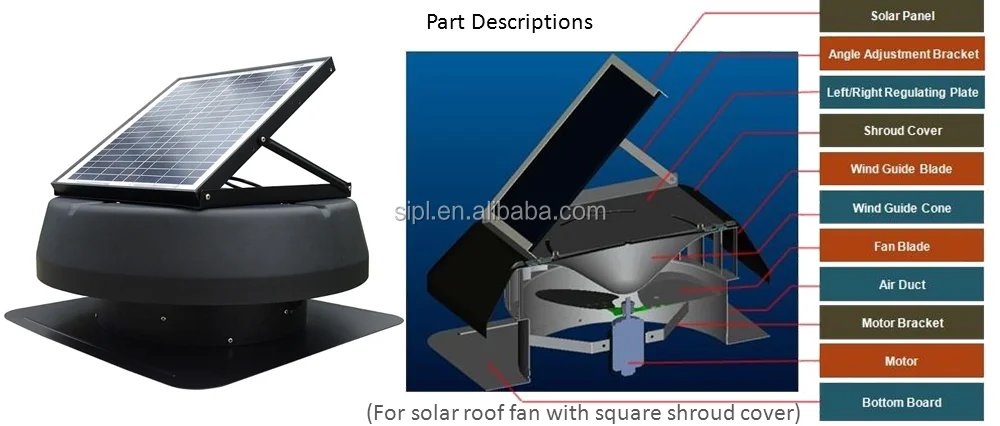 With good performance on ventilating, this solar roof fan can be well applied to residential, industrial, agricultural & commercial ventilation.