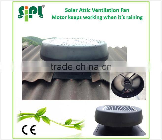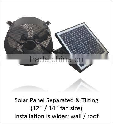Solar panel is embedded into the fan cover, so suitable to mount on a roof with slope angle no bigger than 45°.