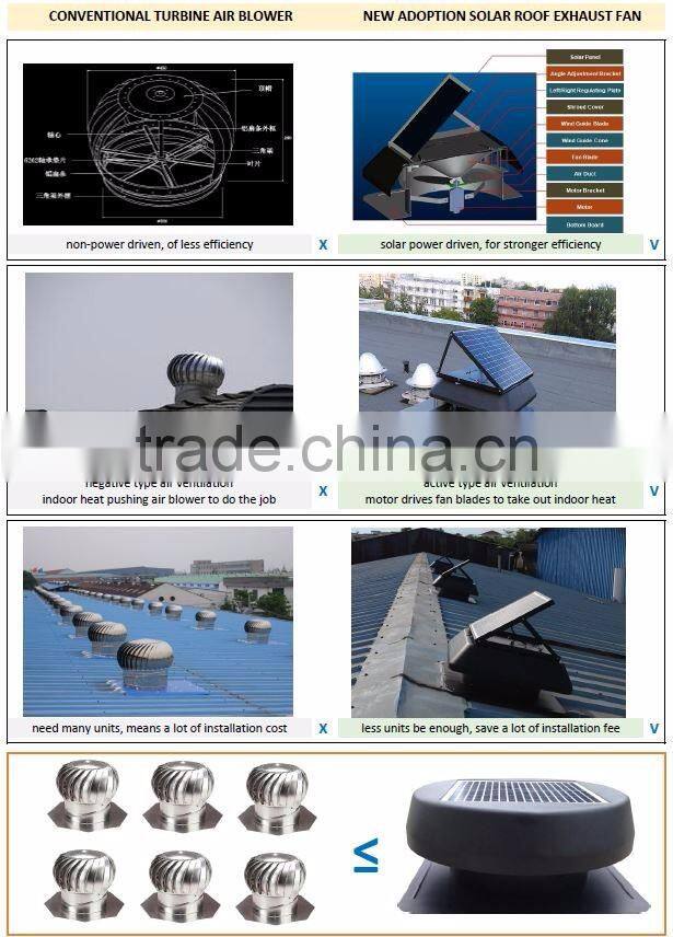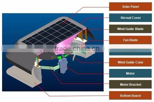 (the product structure is basically same for every design of our solar attic fans, only differs in the solar panel being tilting or being fixed, and the fan cover being Square shape or Round shape)
