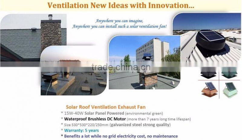 Being a strong & experienced manufacture in the ventilation product industry for more than 5 years, our solar fans have formed a comprehensive series that they cover your different demands in roof mounted use / wall mounted use / day time use / day & night time use, or home use / factory use / greenhouse use / poultry farm use / water tank use / storage container use, etc.