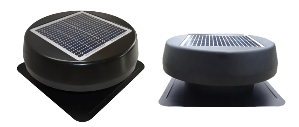 The solar roof fan is in round shape with panel embedded on the top of shroud cover.